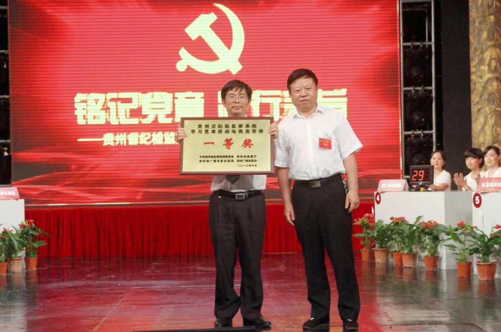 在建党92周年即将到来之际,6月27日,以“铭记党章,践行宗旨”为主题的全省纪检监察系统学习党章活动电视竞答赛总决赛在贵州电视台演播大厅举行。经过紧张角逐,由我校干部组成的省直机关代表队摘得桂冠,黔东南州、贵阳市代表队获二等奖,安顺市、铜仁市、遵义市代表队获三等奖,其余代表队获优秀奖。