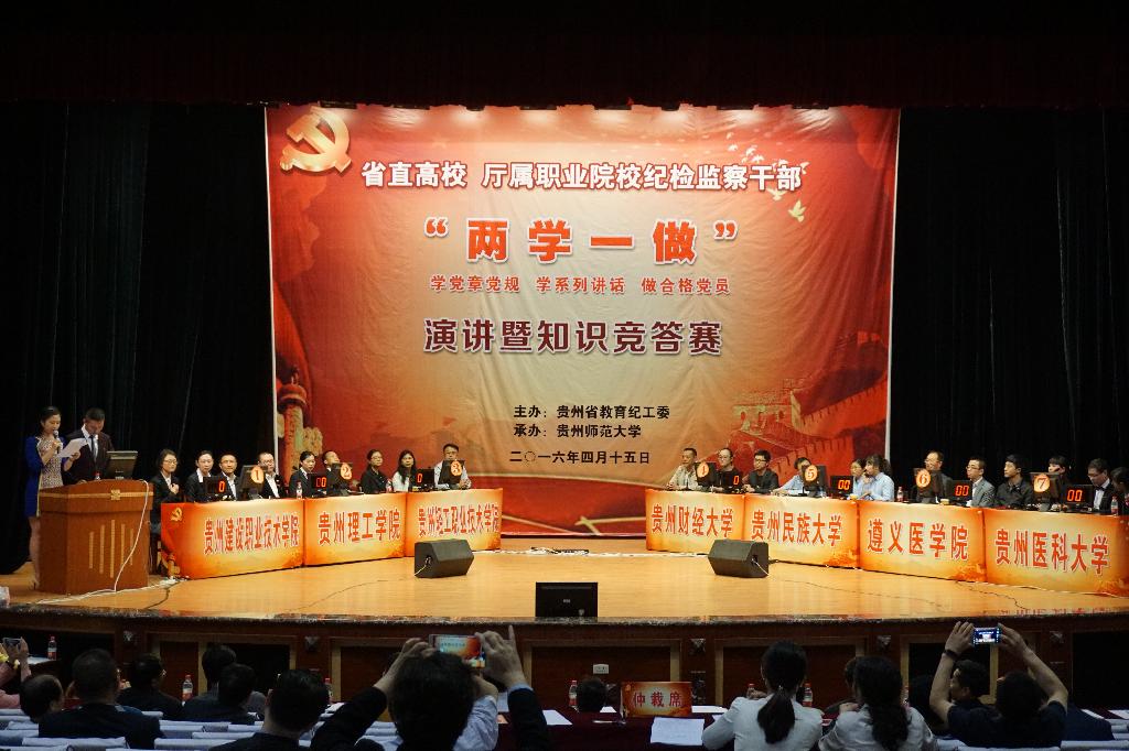 4月15日,由贵州省教育纪工委主办,我校承办的省直高校、厅属职业院校纪检监察干部“两学一做”演讲·知识竞赛在我校宝山校区大礼堂举行。