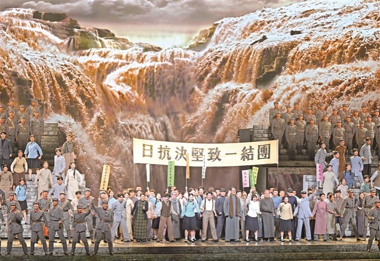 这场大型演出如同一部史诗,深情回顾了中国人民抗日战争和世界反法西斯战争波澜壮阔的历史,突出表现了中国共产党在抗战中的中流砥柱作用,唱响了中国人民抗击侵略的英雄凯歌。晚会上呈现的延安、黄河等象征理想信念和民族精神的文化标识给人们留下深刻印象,彰显了中华民族自立于世界民族之林的精神风貌。